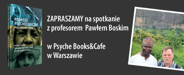 Zapraszamy na spotkanie z profesorem Pawłem Boskim w środę 4 listopada o godzinie 18.00 w Psyche Books&Cafe mieszczącej się na warszawskim Uniwersytecie SWPS. Profesor doktor habilitowany Paweł Boski to założyciel nurtu psychologii międzykulturowej w Polsce. W swoim dorobku ma m.in. siedem lat pracy w Nigerii, badania kulturowych ram procesów psychicznych i łącznie czterdzieści lat kontaktów z Afryką Subsaharyjską. W pierwszej części książki „Podróże psychologiczne” opisuje swój wieloletni pobyt w Afryce. Intrygująco, nie szczędząc dowcipu, snuje opowieść o życiu w kulturze, w jakiej relacje hierarchiczne nie mają sobie równych na całym świecie. Gdzie podróż współczesnego odkrywcy kulturowego to zanurzanie się w średniowieczu, w bajkowej przeszłości. I gdzie władza pokazuje naprzemiennie oblicza zarówno dobrotliwej opiekuńczości, jak i brutalnej siły.